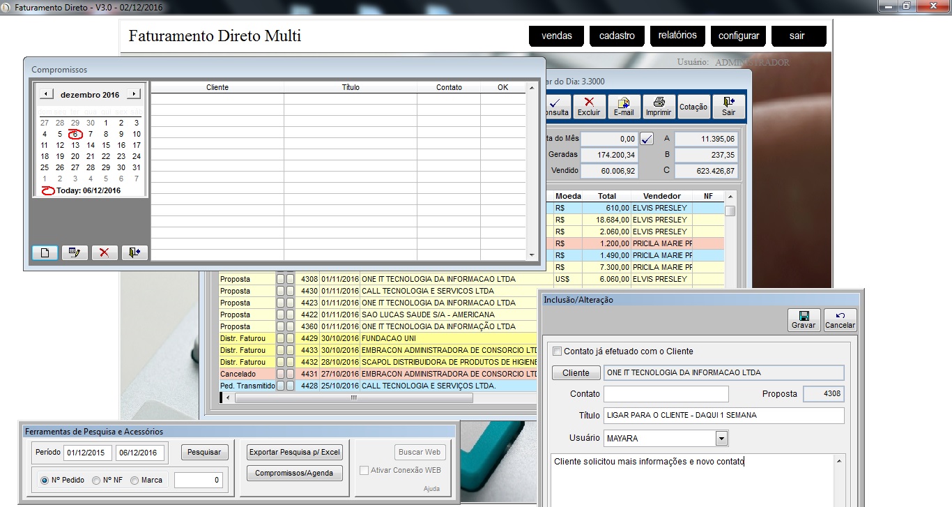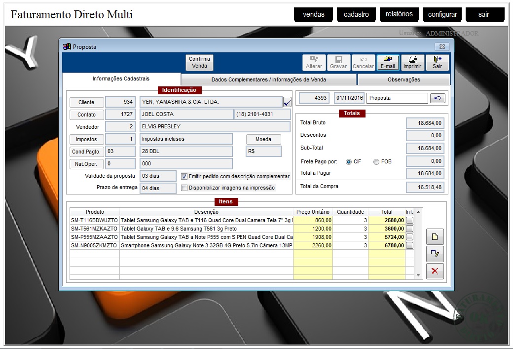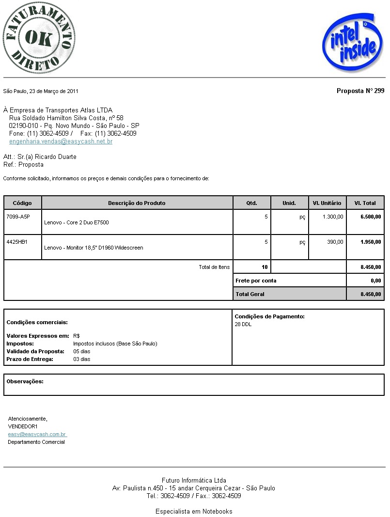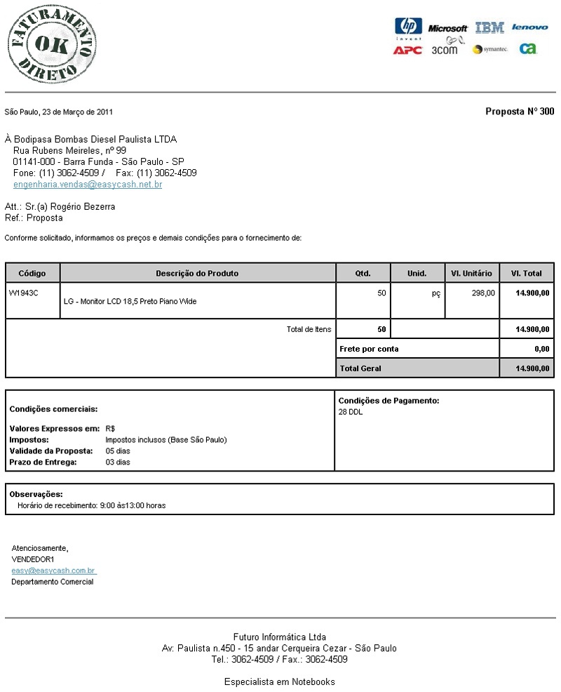 Desenvolvido inicialmente para ser uma aplicação de Venda Direta, porém acompanhando a mudança dos Canais de Distruição por volta do ano de 2006, o sistema Fatura D se reinventou e hoje conta com mais de 10 anos de vida e milhares de Propostas incluídas e comercializadas por diversas Revendas em vários Estados do Brasil. Proporcionando segurança tanto para o Revendedor, quanto para o Distribuidor e quem sai ganhando é sempre o cliente final.
