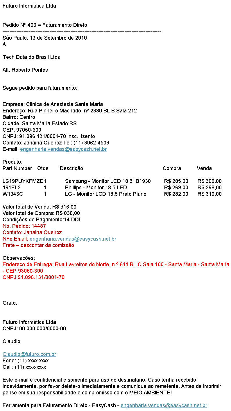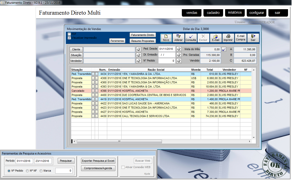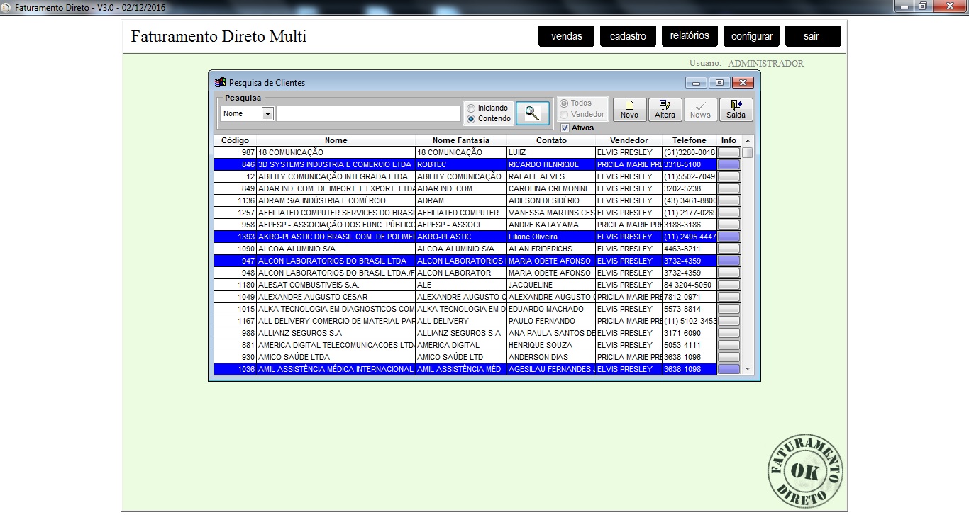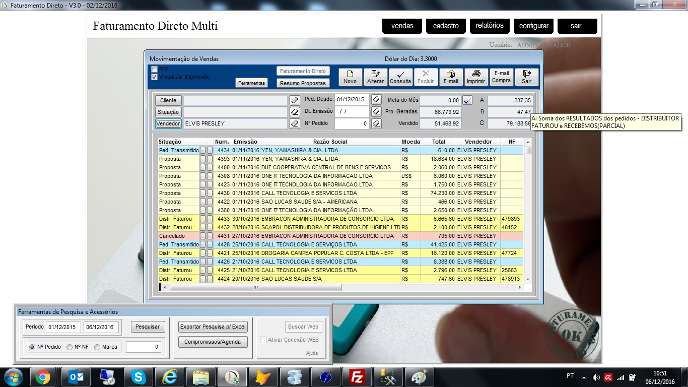 Desenvolvido inicialmente para ser uma aplicação de Venda Direta, porém acompanhando a mudança dos Canais de Distruição por volta do ano de 2006, o sistema Fatura D se reinventou e hoje conta com mais de 10 anos de vida e milhares de Propostas incluídas e comercializadas por diversas Revendas em vários Estados do Brasil. Proporcionando segurança tanto para o Revendedor, quanto para o Distribuidor e quem sai ganhando é sempre o cliente final.
